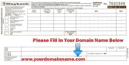 Note: Please remember to write your domain name on The Transaction Description section of the deposit slip shown as below. For outstation cheque, please include RM0.50 for bank charges.